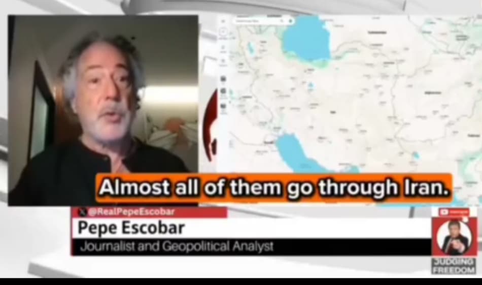भू-राजनीति के पत्रकार Pepe Escobar का कहना है कि China ने हाल ही में चीन-ईरान रेलवे परियोजना का निर्माण पूरा कर लिया है। यह रेलवे पूर्व से पश्चिम को जोड़ने वाले संपर्क गलियारे की रीढ़ मानी जा रही है। यह मार्ग पश्चिमी चीन के Xinjiang क्षेत्र को मध्य एशिया के रास्ते Turkmenistan होते हुए Iran और सीधे Persian Gulf से जोड़ता है। इस मार्ग की एक महत्वपूर्ण कड़ी Tehran से लगभग 20 किलोमीटर बाहर स्थित एक ड्राई पोर्ट (स्थलीय बंदरगाह) है।