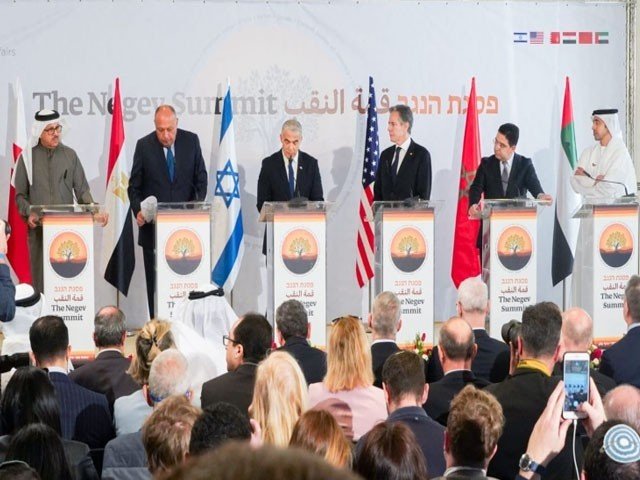 विश्व समाचार एजेंसी के अनुसार इतिहास में पहली बार चार अरब देशों के विदेश मंत्री इस्राईल की धरती पर एक महत्वपूर्ण कार्यक्रम में शामिल हुए। बैठक में अमेरिकी विदेश मंत्री एंथनी ब्लिंकन भी शामिल हुए। छह देशों के विदेश मंत्रियों की एक महत्वपूर्ण बैठक इस्राईल के एक छोटे से शहर में आयोजित की गई जिसकी मेजबानी इस्राईल के विदेश मंत्री यायर लिपिड ने की। प्रतिभागियों ने क्षेत्र में बदलती स्थिति और मध्य पूर्व में ईरान के प्रभाव पर चर्चा की।