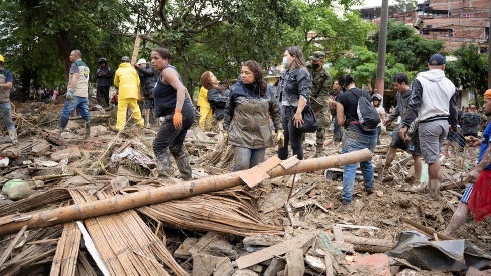 कोलंबिया के अधिकारियों ने एक तस्वीर जारी की जिसमें हरे-भरे पर्णसमूह में एक पहाड़ को कवर करते हुए एक क्षेत्र दिखाई दे रहा है। पास में उफनती नदी के पास रहने वाले अन्य निवासियों को सुरक्षित निकाल लिया गया है। कोलंबिया के आपदा प्रबंधन अधिकारियों ने कहा कि बचाव दल और अधिक लोगों की तलाश कर रहे हैं।