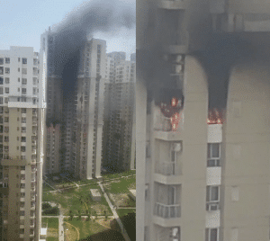 नोएडा सेक्टर 100 की सोसाइटी में एसी फटने से फ़्लैट में लगी आग, सोसाइटी में दहशत