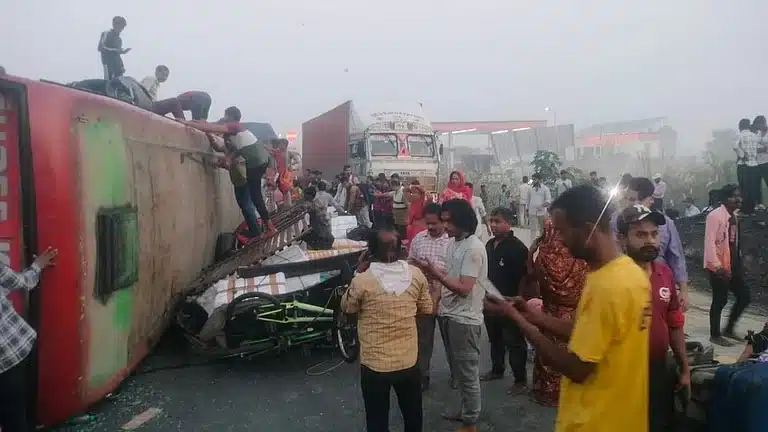 छठ महापर्व के मौके पर अपने घर लौट रहे बिहार के यात्रियों के लिए गुरुवार की सुबह दर्दनाक साबित हुई। जयपुर से मधुबनी जा रही एक तेज रफ्तार लग्जरी बस उत्तर प्रदेश के कुशीनगर जिले में एनएच-28 पर बहादुरपुर पुलिस चौकी के पास अनियंत्रित होकर पलट गई। हादसे में लगभग 22 यात्री घायल हो गए, जिनमें महिलाएं और बच्चे भी शामिल हैं।