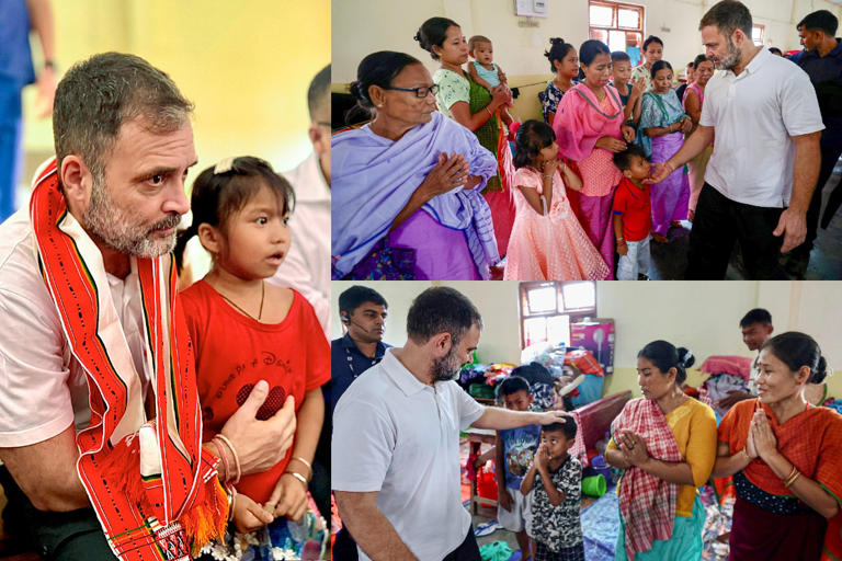 राहुल गांधी मणिपुर पहुंचे, राहत शिविरों का दौरा कर, पीड़ितों से मुलाकात की
