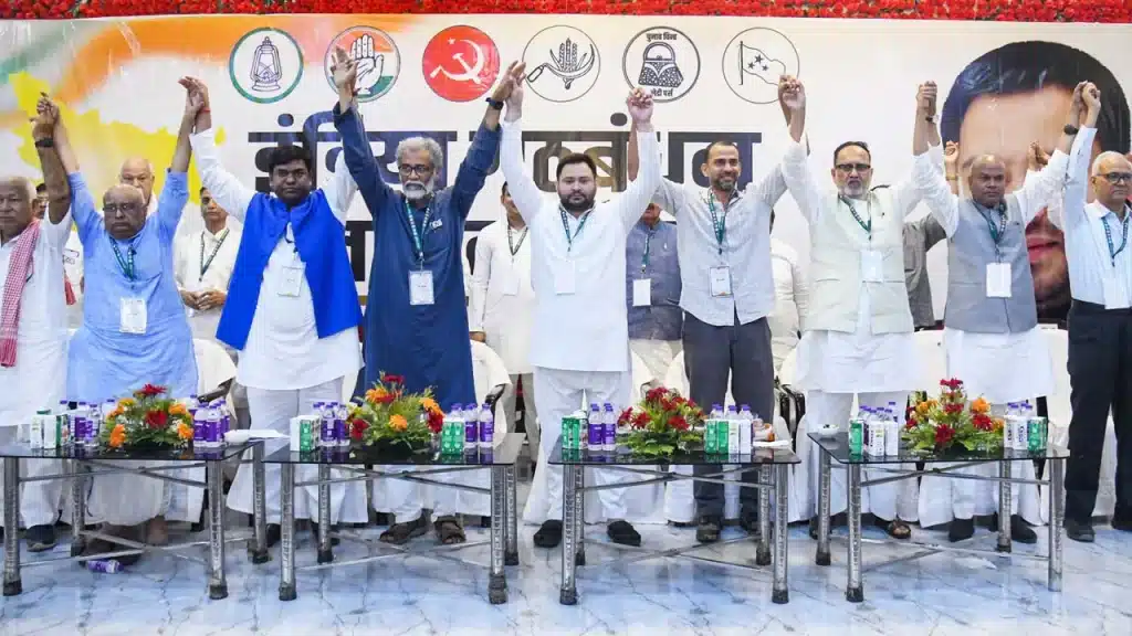 विधानसभा चुनाव की तैयारियों के बीच गुरुवार (23 अक्टूबर) को पटना के मौर्या होटल में महागठबंधन की एक अहम साझा प्रेस कॉन्फ्रेंस हुई, जिसमें तेजस्वी यादव को औपचारिक रूप से मुख्यमंत्री पद का उम्मीदवार घोषित किया गया। इस घोषणा के साथ महागठबंधन ने अपने चुनावी अभियान की दिशा तय कर दी है।