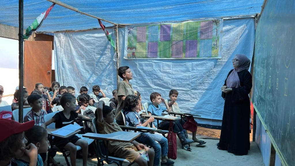 इतनी मुश्किल हालत के बीच लोगों ने पढ़ाई शुरू करने की कोशिशें शुरू कर दीं। जिन स्कूलों को कम नुकसान हुआ है, उनकी मरम्मत की जा रही है। जहाँ कुछ भी नहीं बचा, वहाँ खुले मैदानों में तंबू लगाकर कक्षाएँ चल रही हैं। कुछ पुराने ऐतिहासिक भवनों को भी अस्थायी स्कूल में बदल दिया गया है। कई स्कूलों में मेज-कुर्सी, दरवाजा, खिड़की कुछ भी नहीं है। कुछ जगहों पर इज़रायली सेना के कारण स्कूल तक पहुँचना भी बहुत खतरनाक है।