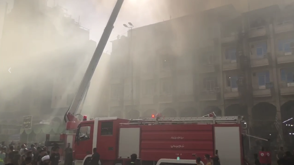 कर्बला, इमाम हुसैन अ.स. के रौज़े के नज़दीक लगी भीषण आग + वीडियो