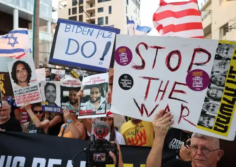 प्रदर्शनकारियों के हाथों में तख्तियां थीं जिन पर लिखा था – “युद्ध का कोई विजेता नहीं होता” और “बंधकों को वापस लाओ”। इस जनसैलाब ने सरकार से यह स्पष्ट मांग की कि, वह युद्ध को जल्द खत्म करे और ग़ाज़ा में हमास के क़ब्ज़े में मौजूद दर्जनों इज़रायली बंधकों की सुरक्षित रिहाई के लिए तत्काल और गंभीर प्रयास करे।