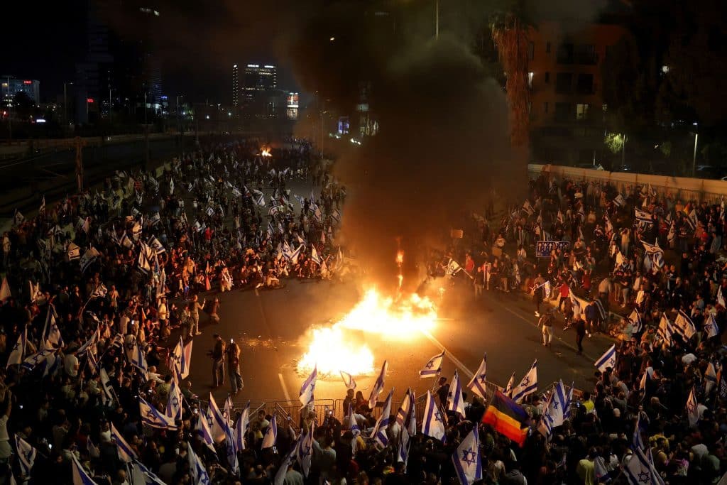 इज़रायल में प्रदर्शनकारियों ने सड़कों को आग के हवाले किया