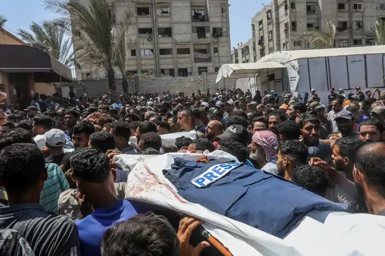 सोमवार को गाज़ा में इज़रायली हमलों में कुल 61 लोग मारे गए। इनमें नस्र अस्पताल पर हमला सबसे बड़ा था, जिसमें पत्रकार मोहम्मद सलामा (अल जज़ीरा के कैमरामैन) भी शहीद हुए। अल जज़ीरा ने इज़रायल पर “सच को दबाने के लिए संगठित अभियान” चलाने का आरोप लगाया। बाद में ख़ान युनुस में एक और पत्रकार हसन दूहान की भी हत्या कर दी गई। इस तरह सोमवार को मारे गए पत्रकारों की संख्या छह हो गई।