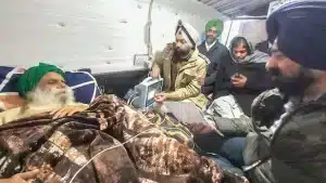 खनौरी महापंचायत में किसानों की भीड़, स्ट्रेचर पर पहुंचे डल्लेवाल हरियाणा-पंजाब के खनौरी बॉर्डर पर