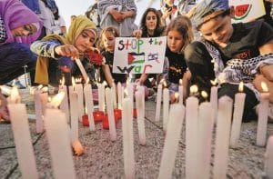 फ़िलिस्तीनियों के समर्थन में पेरिस, न्यूयॉर्क, बार्सिलोना, ट्यूनिस, मैनचेस्टर और बेरूत में इज़रायल के ख़िलाफ़