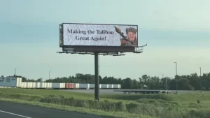 रॉकेट लॉन्चर लिए हुए बाइडन का पोस्टर, बताया तालिबानी आतंकी अमेरिकी सेना के अफगानिस्तान से