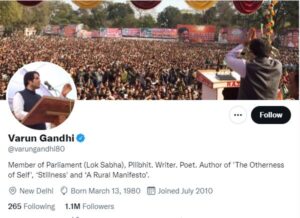 सांसद वरुण गांधी ने अपने ट्विटर अकाउंट के बायो से ‘बीजेपी’ शब्द हटाया