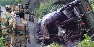 सेना के वाहन के खाई में गिरने से 9 जवान शहीद लद्दाख में लेह के