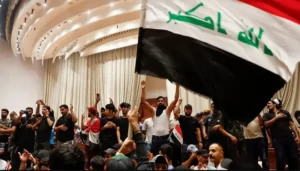 इराकी संसद के सामने विरोध प्रदर्शन